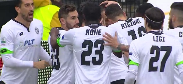 CESENA (3-5-2): Agazzi; Ligi, Rigione, Donkor; Di Roberto (14′ st Laribi), Garritano, Crimi (38′ st Panico), Konè, Renzetti; Ciano, Cocco (31′ st Rodriguez). A disp. Agliardi, Falasco, Perticone, Vitale, Capelli, Setola. All. Camplone