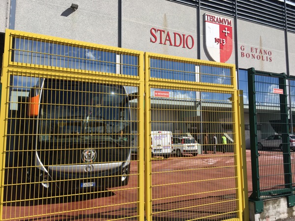 Ore 12.50 I giocatori del Teramo stanno arrivando con mezzi propri, mentre è uscito anche il sole.