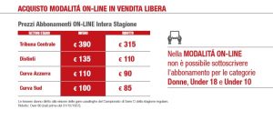 Nelle giornate in cui si svolgeranno gare amichevoli e di campionato la vendita degli abbonamenti verrà sospesa