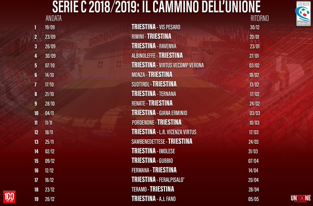 Ecco il calendario della Triestina: il 18 novembre il derby con il Vicenza al Rocco, mentre quello con il Pordenone andrà in scena sette giorni prima al Bottecchia